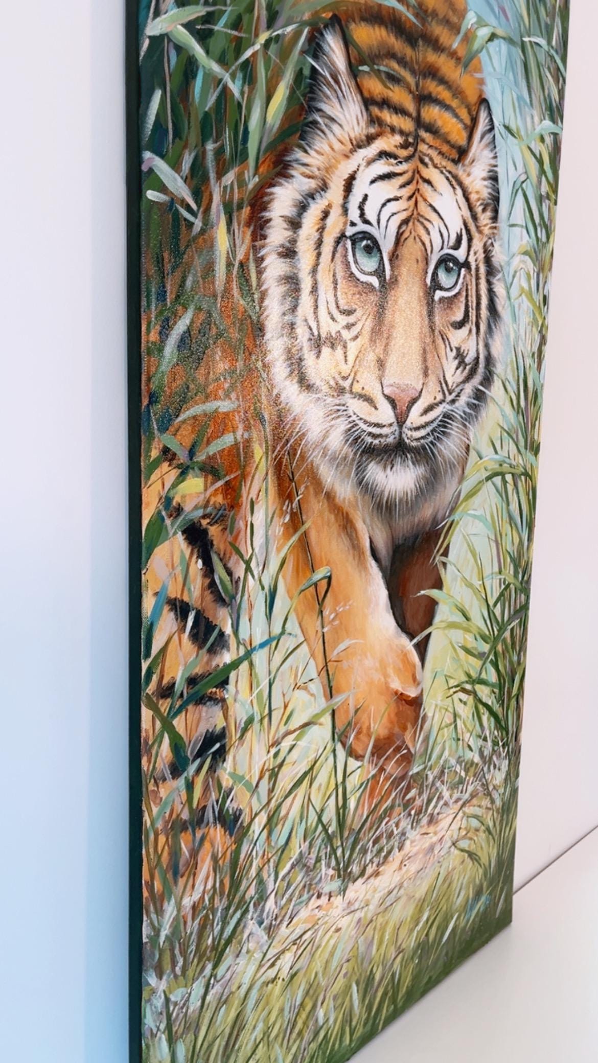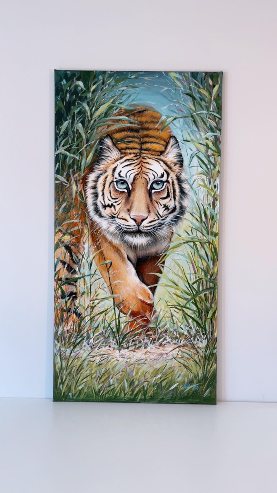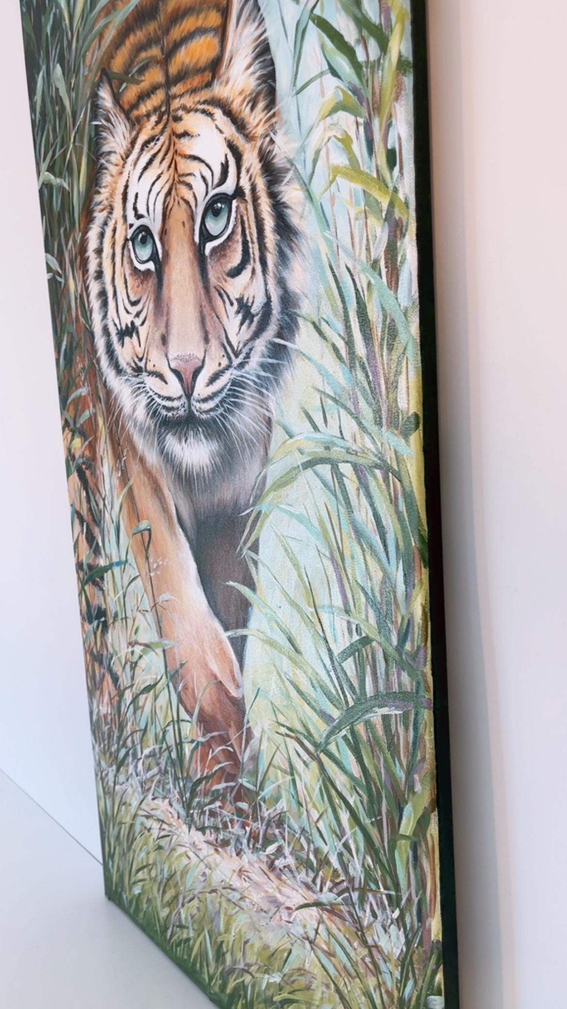 "Hunting". Tiger original acrylic painting, safari animal, realism, tiger fineart, canvas, Canvas, Wall art Living room, wall decor, hand painted. 48x24 inch.