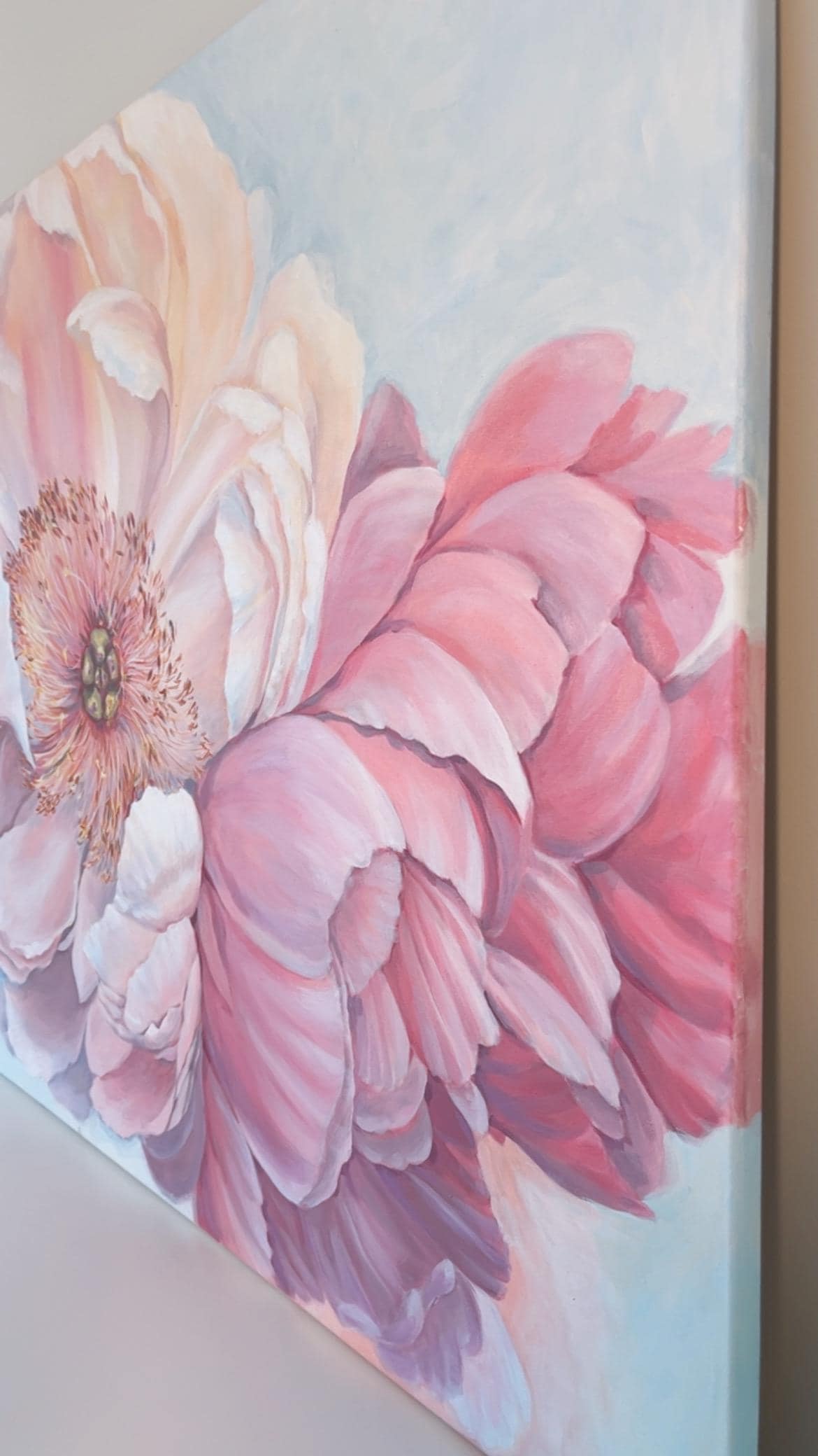 "Peonies in Bloom" - a romantic floral painting capturing the gentle beauty of peony flowers in full bloom. Soft petals, natural light, and subtle texture bring elegance and serenityto any space. Perfect for a bedroom, hallway, or as a thoughtful gift for a flowers lover.