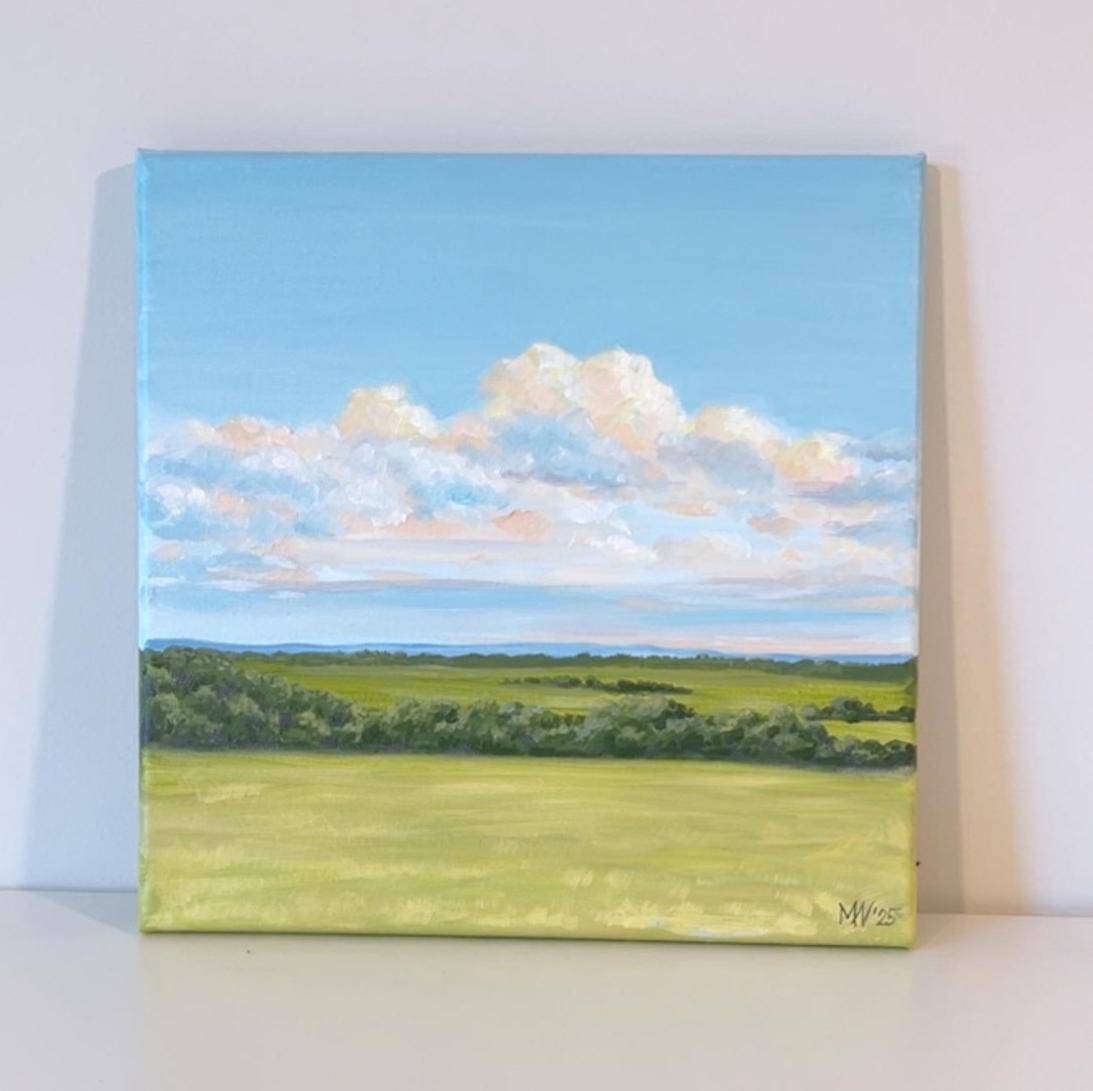 Landscape acrylic painting, original painting, canvas, 12x12in, wall art decor, house, Wall art Living room, hand painted.